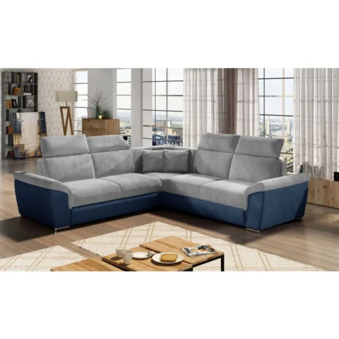 Kotna sedežna garnitura FERDO 5 je kotna sedežna garnitura, katera je narejena iz kvalitnetnega blaga. Garnitura se raztegne v ležišče z delfin mehanizmom. Ima predal za shranjevanje in štiri nastavljive vzglavnike. Garnituri pripadata tudi dve okrasni blazini. Sedežna je vzmetena. Garnitura je univerzalna z valovitimi vzmetmi. Moderne linije vas bodo prepričale.