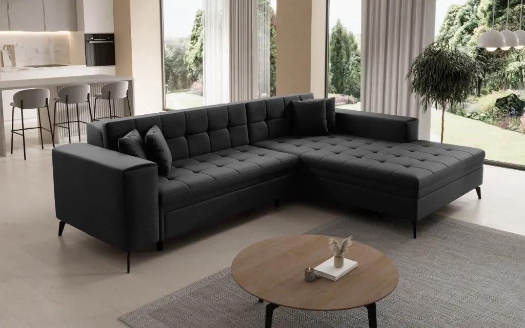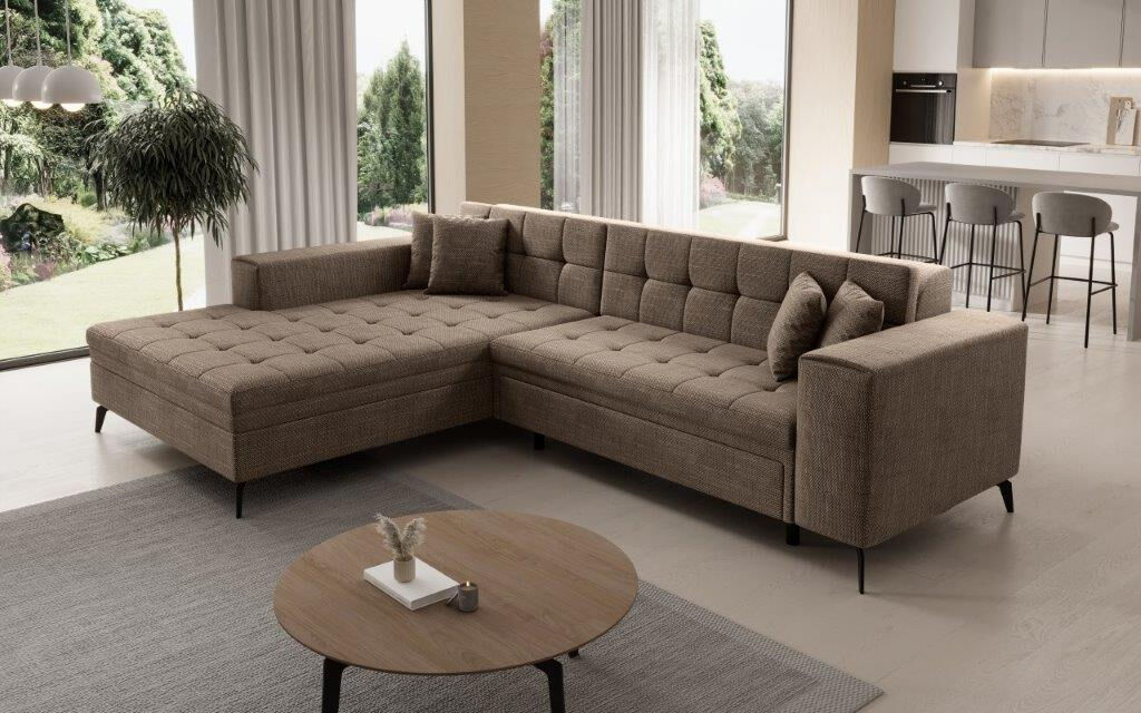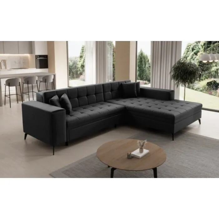 Kotna sedežna garnitura JON je modernega dizajna. Na voljo je v več barvah. Primerna je za vsak prostor. Sedežni je potrebno določiti levi ali desni kot. Prednost je tudi spalna funkcija katera se raztegne z dolphin mehanizmom. Sedež je izdelan iz valovite vzmeti in kombinacije visoko elastične pene, ki bo zagotovo pripomogla k udobnemu počitku.
