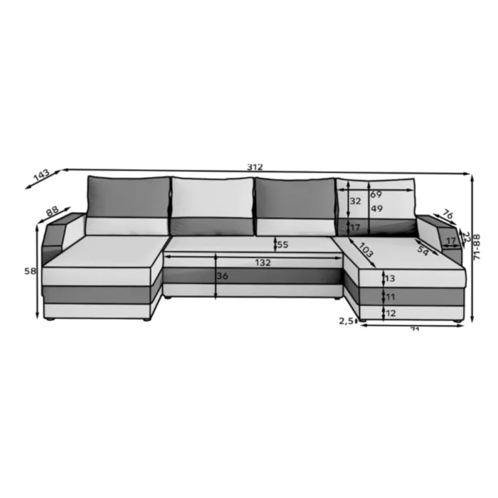 D: 312 cm x G: 143 cm x V: 88 cm