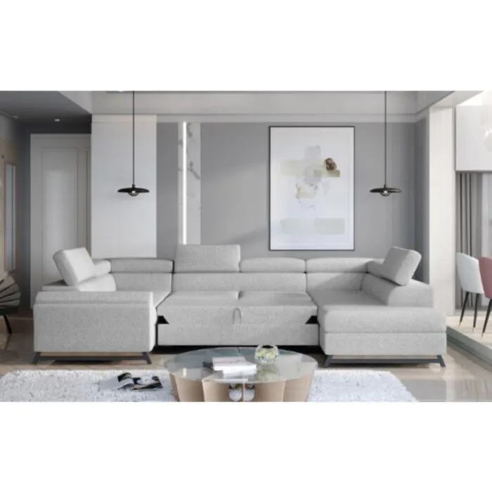 Kotna sedežna garnitura KASA 2 je odlična garnitura po odlični ceni. Narejena je iz mehke velvet tkanine, ki je na voljo v več barvah. Sedežna je vzmetena z valovitimi vzmetmi, ter se raztegne v dodatno ležišče z delfin mehanizmom. Sedežna garnitura KASA 2 je praktična za uporabo, saj vsebuje predal za shranjevanje.