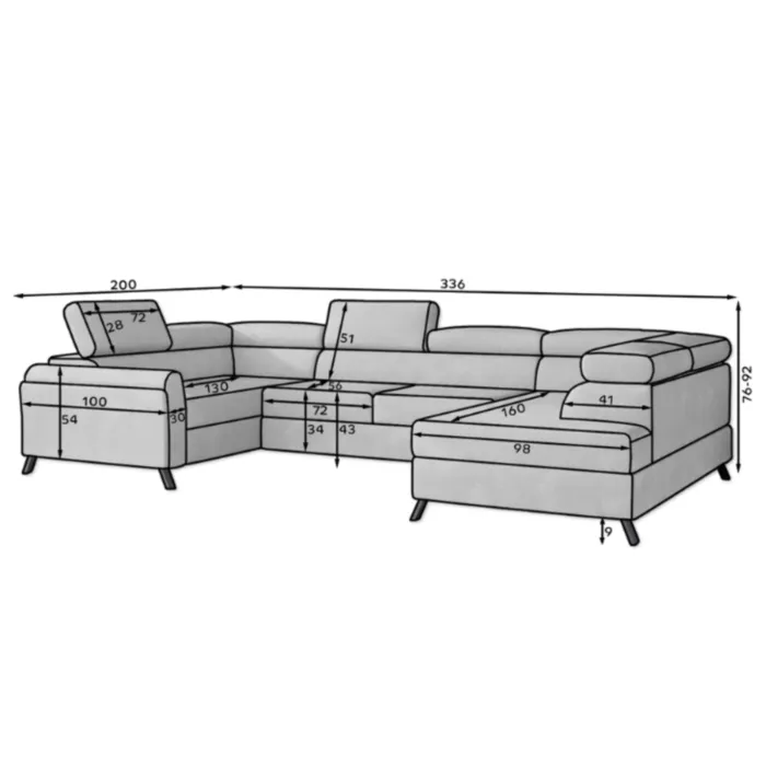D: 336 cm x G: 200 cm x V: 92 cm
