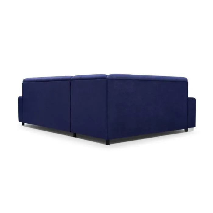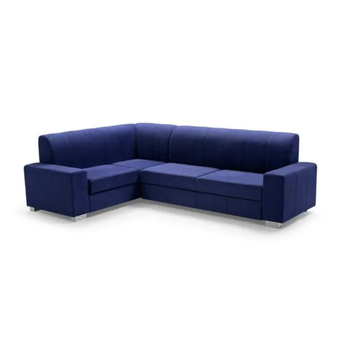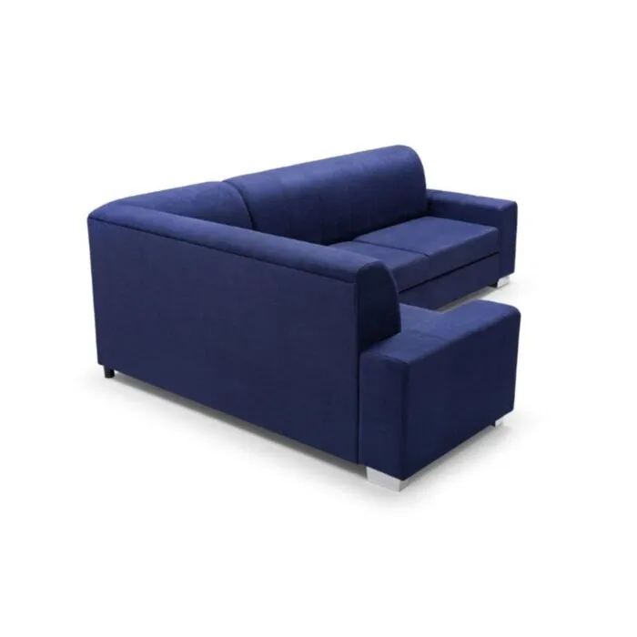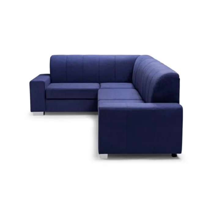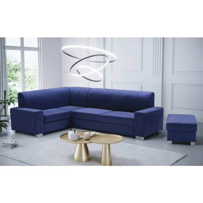 Kotna sedežna garnitura LEON 3, je kotna sedežna garnitura v kompletu s taburejem. Katerega prejmete zraven. Sedežna je oblazinjena v modro tkanino. Raztegne se v dodatno ležišče ter vsebuje zaboj za shranjevanje. Vzmetena je z valovitimi vzmetmi. Garnitura ima levi ali desni kot, katerega morate izbrati.