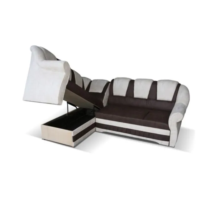 Kotna sedežna garnitura LOLA 3 je kvalitetna sedežna garnitura. Narejena je v kombinaciji umetnega usnja ter blaga. Garnitura ima desno ali levo postavitev katero je potrebno izbrati. Je zelo praktična saj vsebuje zaboj za shranjevanje. Dodatno udobnost pa omogoča raztegljivo ležišče katero se raztegne z delfin mehanizmom. Vzmetena je z valovitimi vzmetmi.