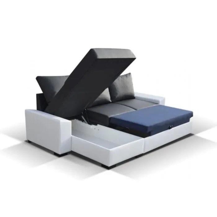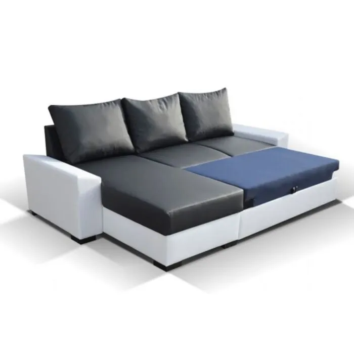 Kotna sedežna garnitura LUISA bo našla prostor v vašem domu. Narejena iz kvalitetnih materialov, oblazinjena v kombinaciji umetnega usnja in tekstila. Sedežna garnitura ima tudi pomožno ležišče ter zaboj za shranjevanje posteljnine. Vzmetena je z valovitimi vzmetmi. Sedežna garnitura je univerzalna zato ji ni potrebno posebej določiti kota.