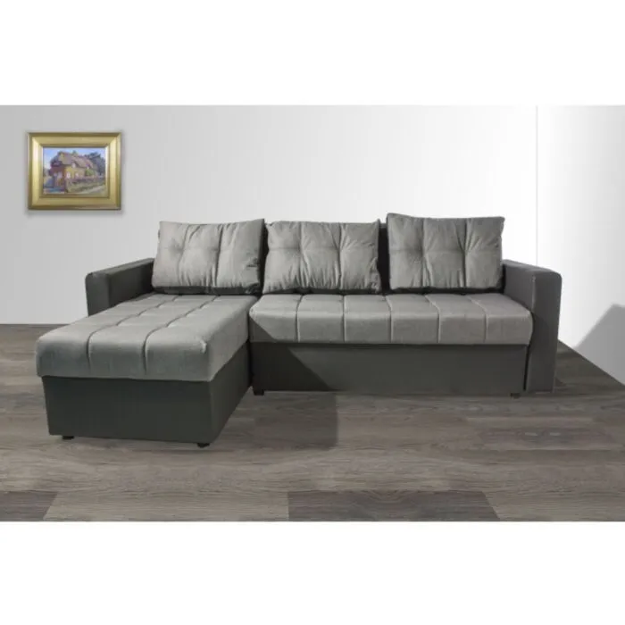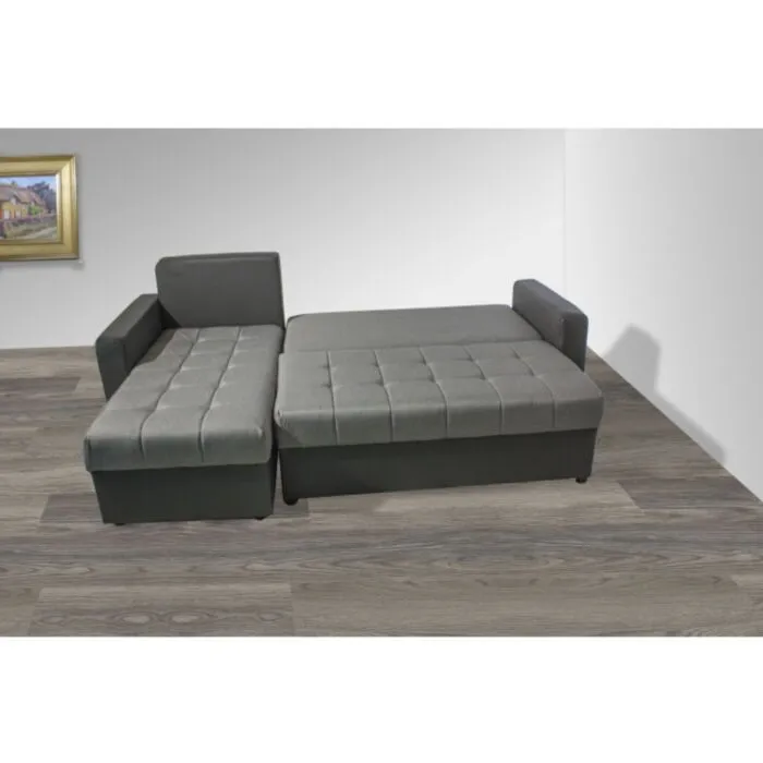Kotna sedežna garnitura LUXUS 2 je odlična garnitura po odlični ceni. Narejena v kombinaciji umetnega usnja in blaga. Zraven garniture dobite pripadajoče blazine. Garnitura je standardne izvedbe, tako da jo lahko postavite levo ali desno. Garnitura se raztegne tudi v posteljo pod katero je predal.