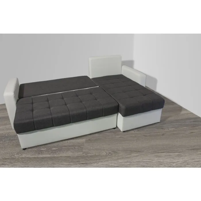Kotna sedežna garnitura LUXUS  je odlična garnitura po odlični ceni. Narejena v kombinaciji umetnega usnja in blaga. Zraven garniture dobite pripadajoče blazine. Garnitura je standardne izvedbe, tako da jo lahko postavite levo ali desno. Garnitura se raztegne tudi v posteljo pod katero je predal.