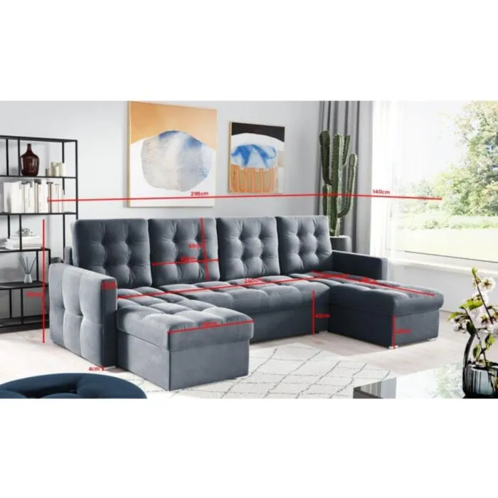 – D: 295 cm x G: 140 cm x V: 90 cm