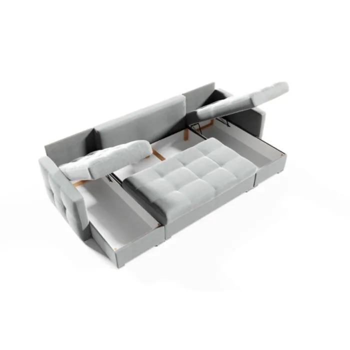 Kotna sedežna garnitura MARE je odlična garnitura po odlični ceni. Narejena iz kakovostnega blaga. Garnitura je standardne izvedbe. Raztegne se v dodatno ležišče. Vsebuje kar tri zaboje za shranjevanje posteljnine. Nogice so kovinske višine 4 cm. Sedežna je vzmetena z bonell vzmetmi. Garnitura je dobavljiva v več barvah.