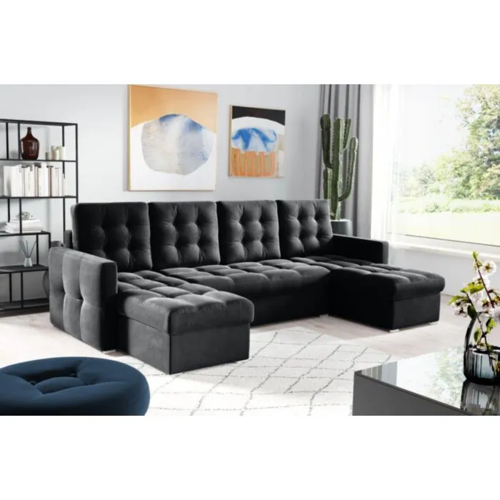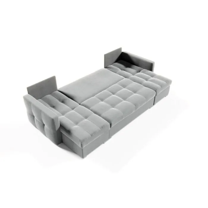 Kotna sedežna garnitura MARE je odlična garnitura po odlični ceni. Narejena iz kakovostnega blaga. Garnitura je standardne izvedbe. Raztegne se v dodatno ležišče. Vsebuje kar tri zaboje za shranjevanje posteljnine. Nogice so kovinske višine 4 cm. Sedežna je vzmetena z bonell vzmetmi. Garnitura je dobavljiva v več barvah.