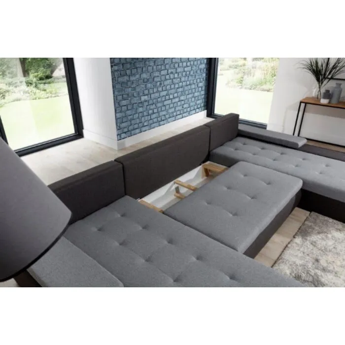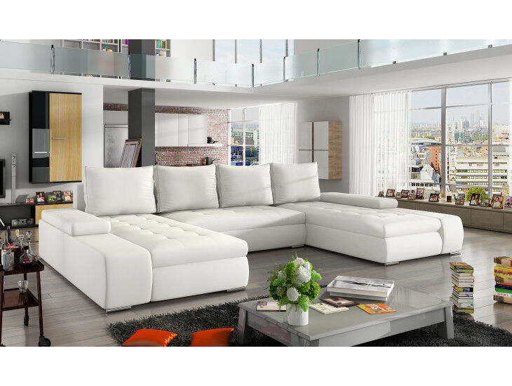 Kotna sedežna garnitura MARIO 3 je odlična garnitura po odlični ceni. Narejena iz umetnega usnja. Zraven garniture dobite pripadajoče blazine. Pri garnituri ni potrebno določati kota, ker je garnitura univerzalna in je možna postavitev tako levo kot desno. Garnitura se raztegne tudi v posteljo ter vsebuje zaboj za shranjevanje. Sedežna je vzmetena z valovitimi vzmetmi.