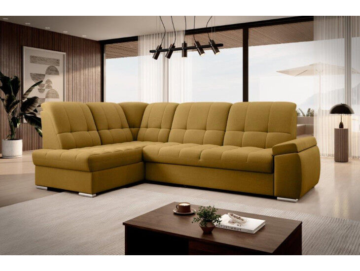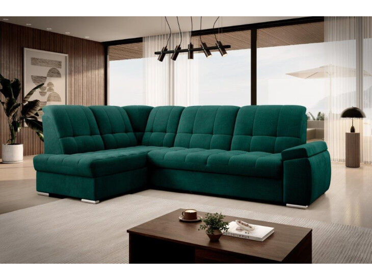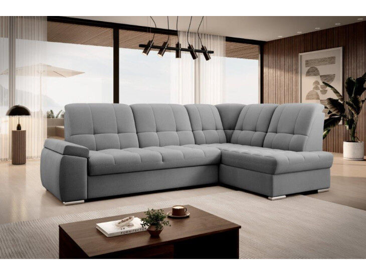 Kotna sedežna garnitura MAT2  je narejena iz kvalitetnih materialov in dobavljiva v več različnih barvah. Ima nastavljiv naslon za hrbet. Garnitura je opremljena z dodatnim ležiščem katero se raztegne z dolphin mehanizmom. Prav tako vsebuje zaboj za shranjevanje. Nogice so elegantne v srebrni barvi, podale se bodo v vsako dnevno sobo. Sedežni morate določiti levi ali desni kot.