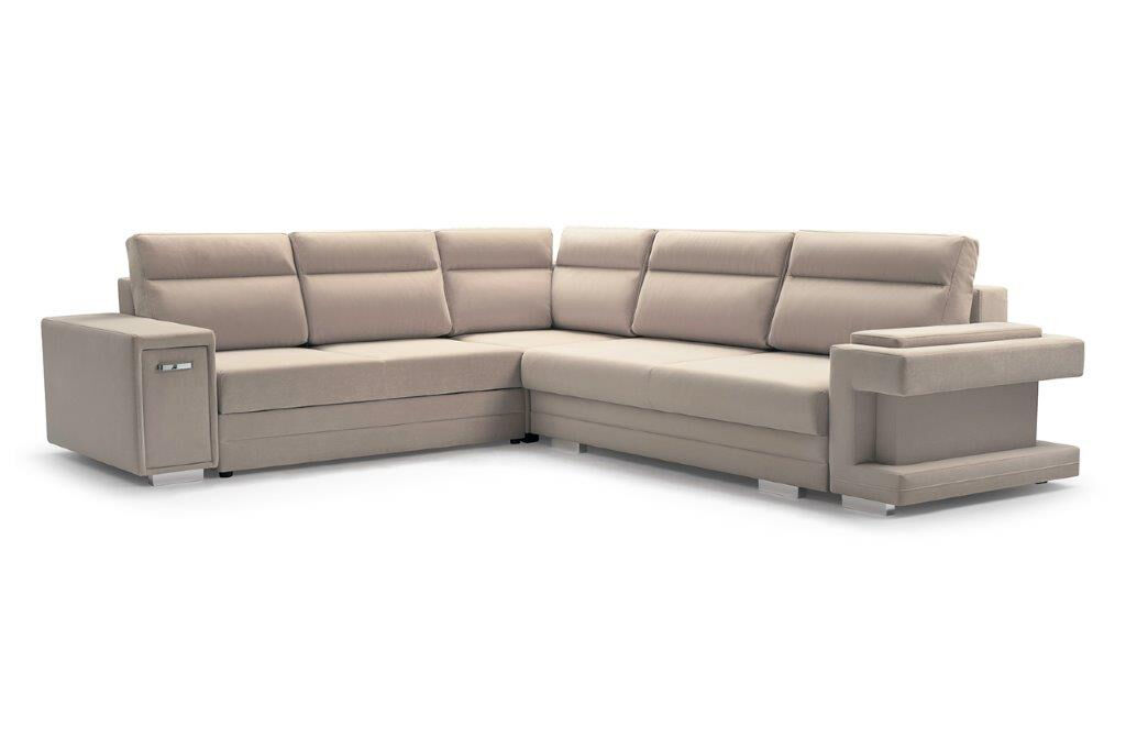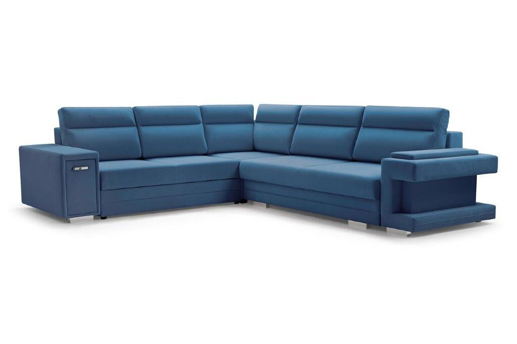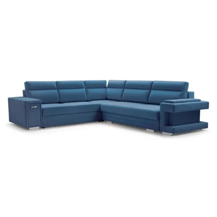 Kotna sedežna garnitura PERCIVAL 2 je moderna in funkcionalna. Raztegne se v ležišče ter vsebuje veliko prostora za shranjevanje. Ima dva zaboja za shranjevanje ter dva predala, pod vsakim rokonaslonom. Vzmetena je z valovitimi vzmetmi.