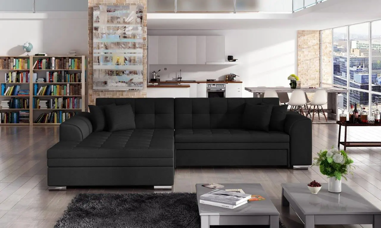 Kotna sedežna garnitura SORENTO črna vas bo navdušila tudi z dodatnim ležiščem. Sedežni morate določiti levi ali desni kot.