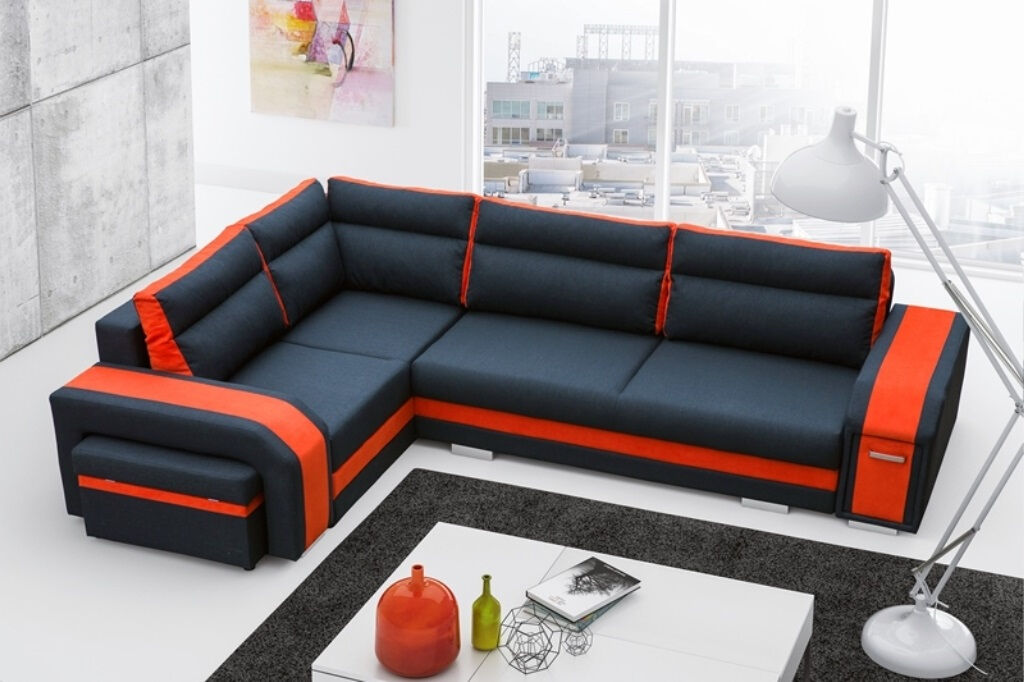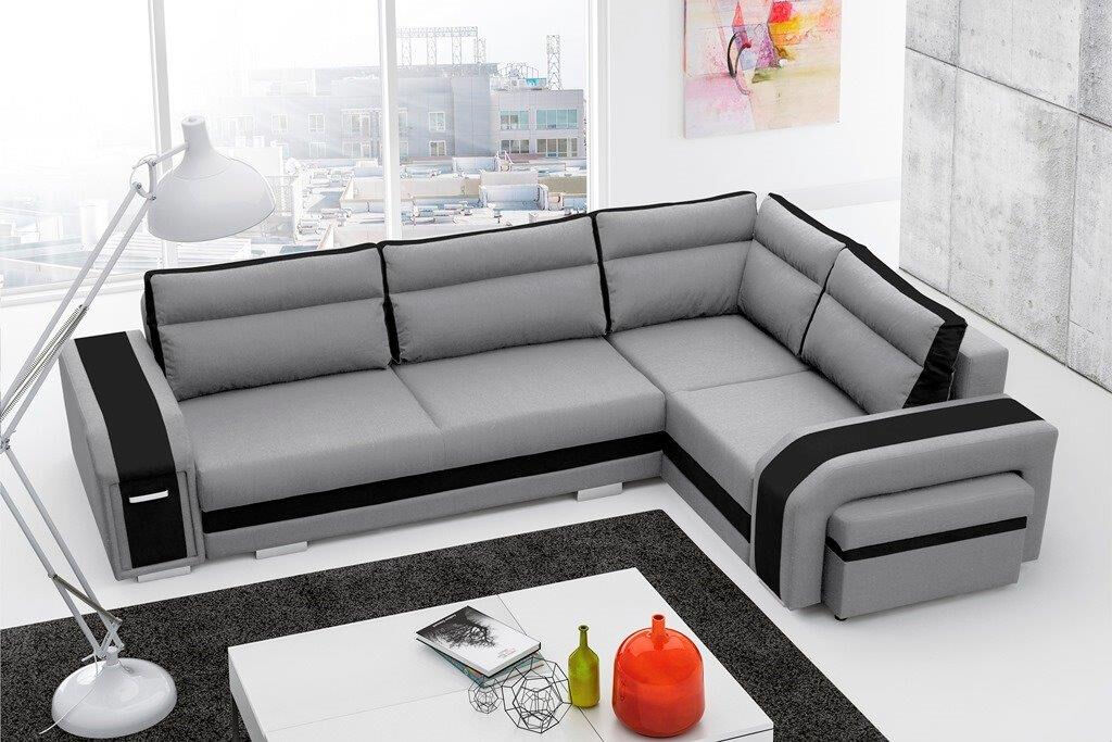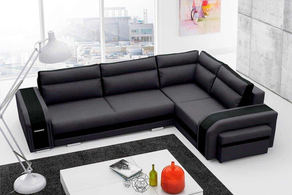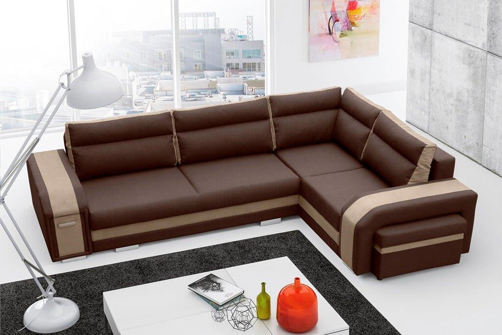 Kotna garnitura TORNADO 3 je kotna sedežna garnitura, katera je narejena iz vrhunskih materijalov. Sedežna ima pomožno ležišče, v otomanu predal, v rokonaslonih pa predalnik in praktičen tabure, kateri ima možnost odpiranja. Sedežna je vzmetena z valovitimi vzmetmi. Garnitura ima levi ali desni kot, katerega morate izbrati.