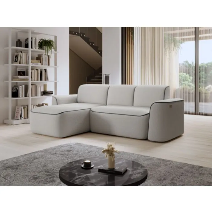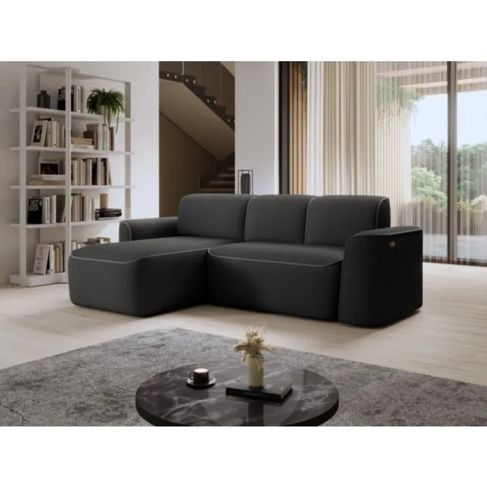 Kotna sedežna garnitura UMANA 2, je mešanica moderne elegance in neprekosljivega udobja, popolna za vašo dnevno sobo. Skrbno je bila zasnovana tako, da harmonično združuje moderno eleganco z udobjem. Ni le kos pohištva, ki navdušuje s svojim dizajnom, temveč je tudi praktičen zaradi naprednega mehanizma Relax z električnim iztegom.