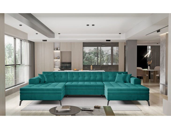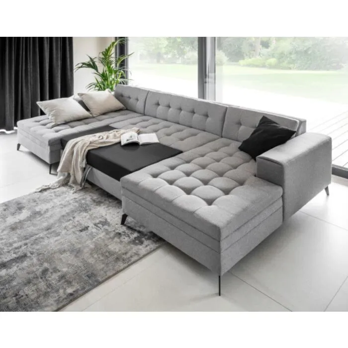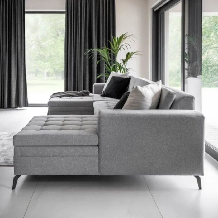 Kotna sedežna garnitura VENOM 2 je odlična garnitura po odlični ceni. Sedežna se raztegne v dodatno ležišče z delfin mehanizmom. Dizajn, kateri vas bo prepričal, zaradi njene velikosti in udobnosti. Pri garnituri ni potrebno določati kota, ker je garnitura univerzalna. Sedežna je vzmetena z valovitimi vzmetmi.