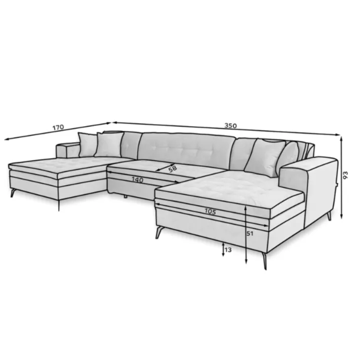 Kotna sedežna garnitura VENOM je odlična garnitura po odlični ceni. Sedežna se raztegne v dodatno ležišče z delfin mehanizmom. Dizajn, kateri vas bo prepričal, zaradi njene velikosti in udobnosti. Pri garnituri ni potrebno določati kota, ker je garnitura univerzalna. Sedežna je vzmetena z valovitimi vzmetmi.