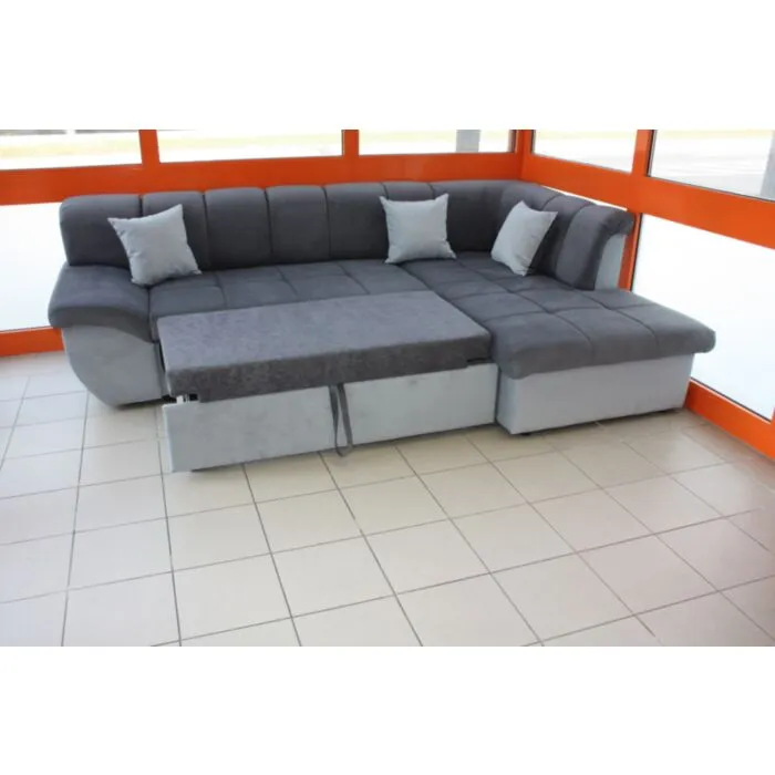 Kotna sedežna garnitura VERONIKA 2 je kotna garnitura, katera je narejena iz vrhunskega nežnega velvet blaga. Garnitura se raztegne v dodatno ležišče. Vzmetena je z valovitimi vzmetmi. Garnitura ima levi ali desni kot, katerega morate izbrati. Dobavljiva je v več različnih kombinacij blaga. Zraven garniture prejmete 3 pripadajoče okrasne blazine.