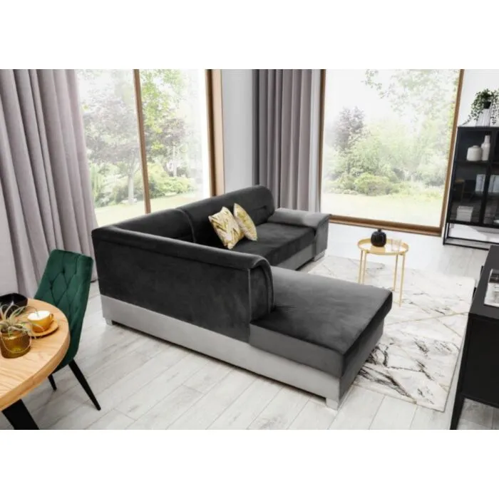 Kotna sedežna garnitura VERY 4 je odlična garnitura po odlični ceni. Izdelana je v kombinciji blaga ter umetnega usnja. Sedežna je vzmetena z valovitimi vzmetmi, ter se raztegne v dodatno ležišče z delfin mehanizmom. Sedežna vsebuje tudi zaboj za shranjevanje. Dizajn, kateri vas bo prepričal.