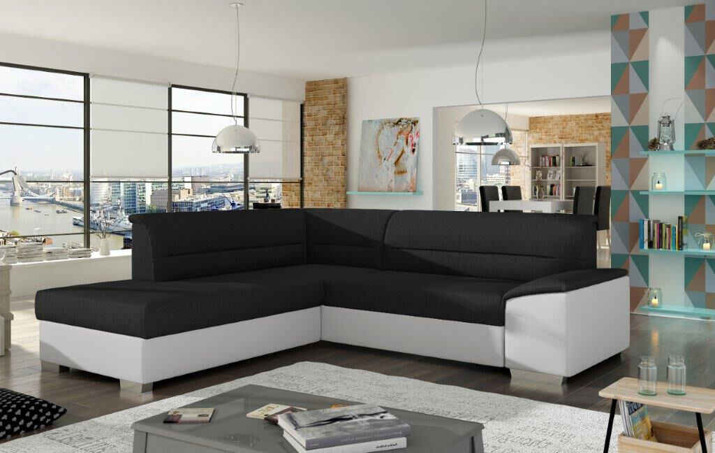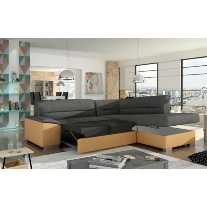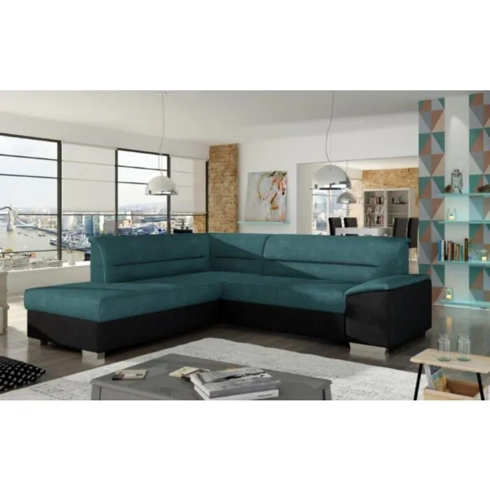 Kotna sedežna garnitura VERY je odlična garnitura po odlični ceni. Izdelana je iz kakovostnega blaga. Sedežna je vzmetena z valovitimi vzmetmi, ter se raztegne v dodatno ležišče z delfin mehanizmom. Sedežna vsebuje tudi zaboj za shranjevanje. Dizajn, kateri vas bo prepričal.