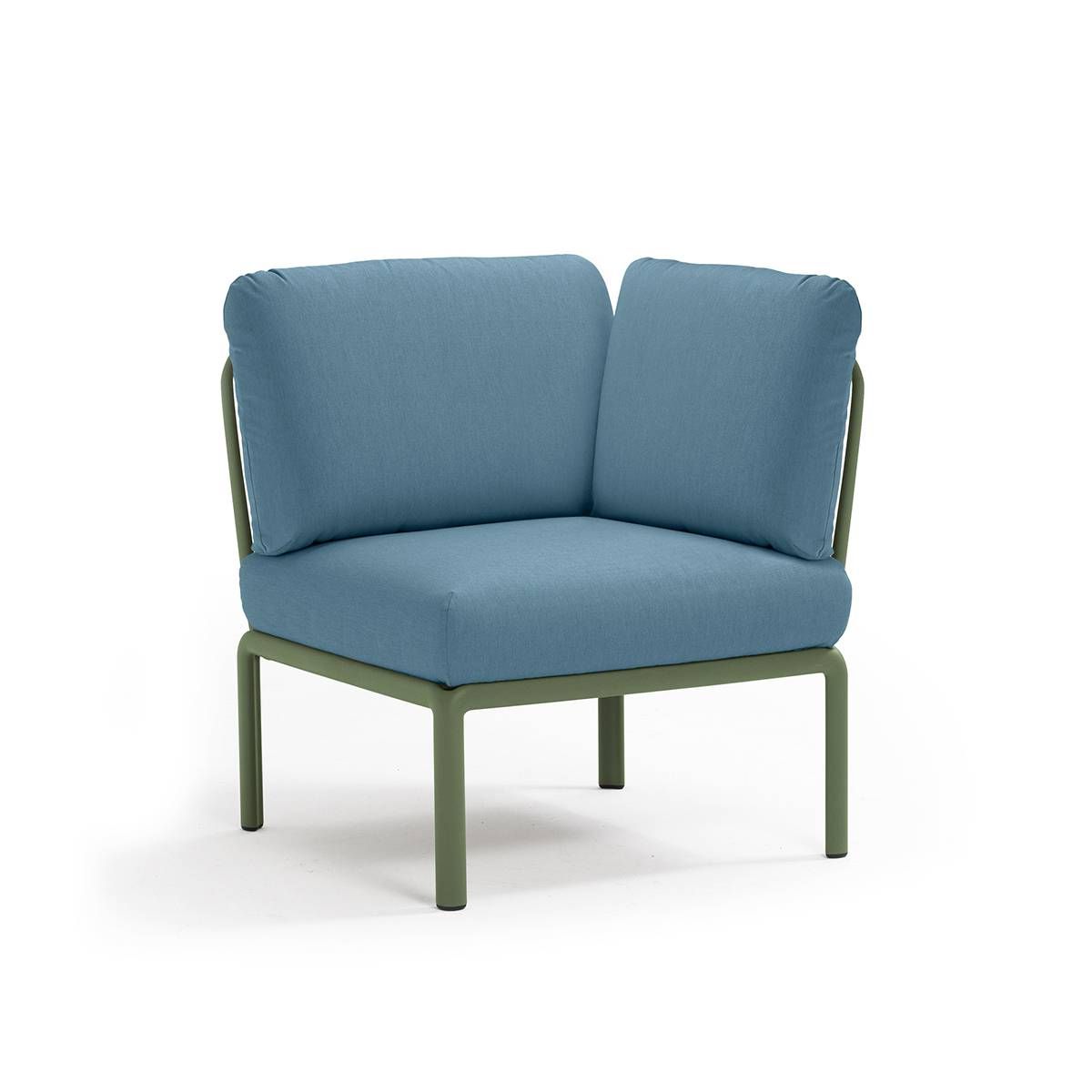 Kotni element KOMODO, za sestavo svoje poljubne garniture ter za poljubno kombinacijo elementov iz serije KOMODO. Barva ogrodja: agave s poljubno barvo blazine. Služi lahko kot kotni garniture.
