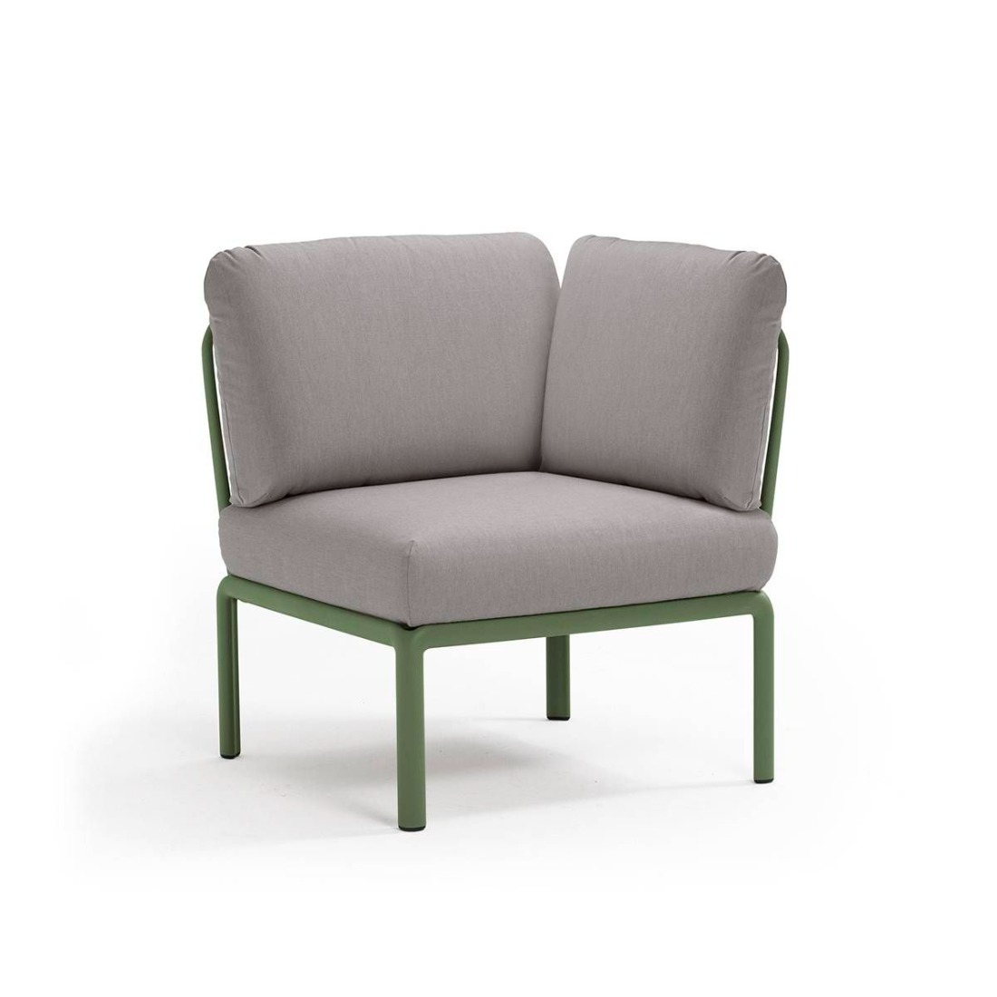 Kotni element KOMODO, za sestavo svoje poljubne garniture ter za poljubno kombinacijo elementov iz serije KOMODO. Barva ogrodja: agave s poljubno barvo blazine. Služi lahko kot kotni garniture.