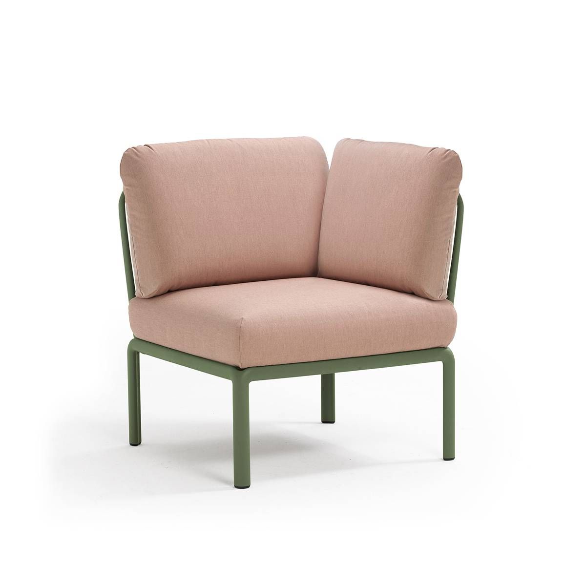 Kotni element KOMODO, za sestavo svoje poljubne garniture ter za poljubno kombinacijo elementov iz serije KOMODO. Barva ogrodja: agave s poljubno barvo blazine. Služi lahko kot kotni garniture.