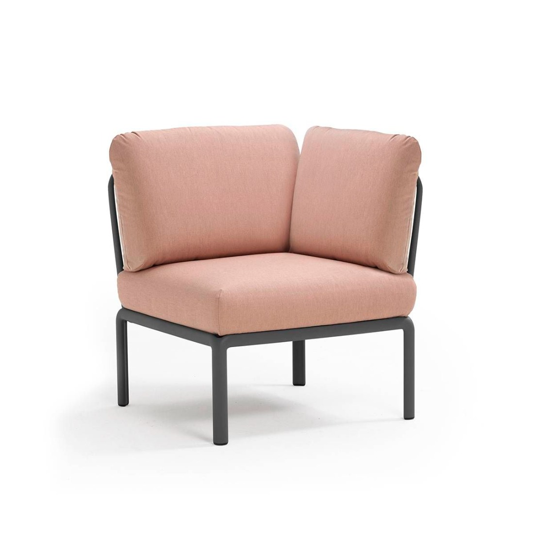 Kotni element KOMODO, za sestavo svoje poljubne garniture ter za poljubno kombinacijo elementov iz serije KOMODO. Barva ogrodja: antracite s poljubno barvo blazine. Služi lahko kot kotni element garniture.