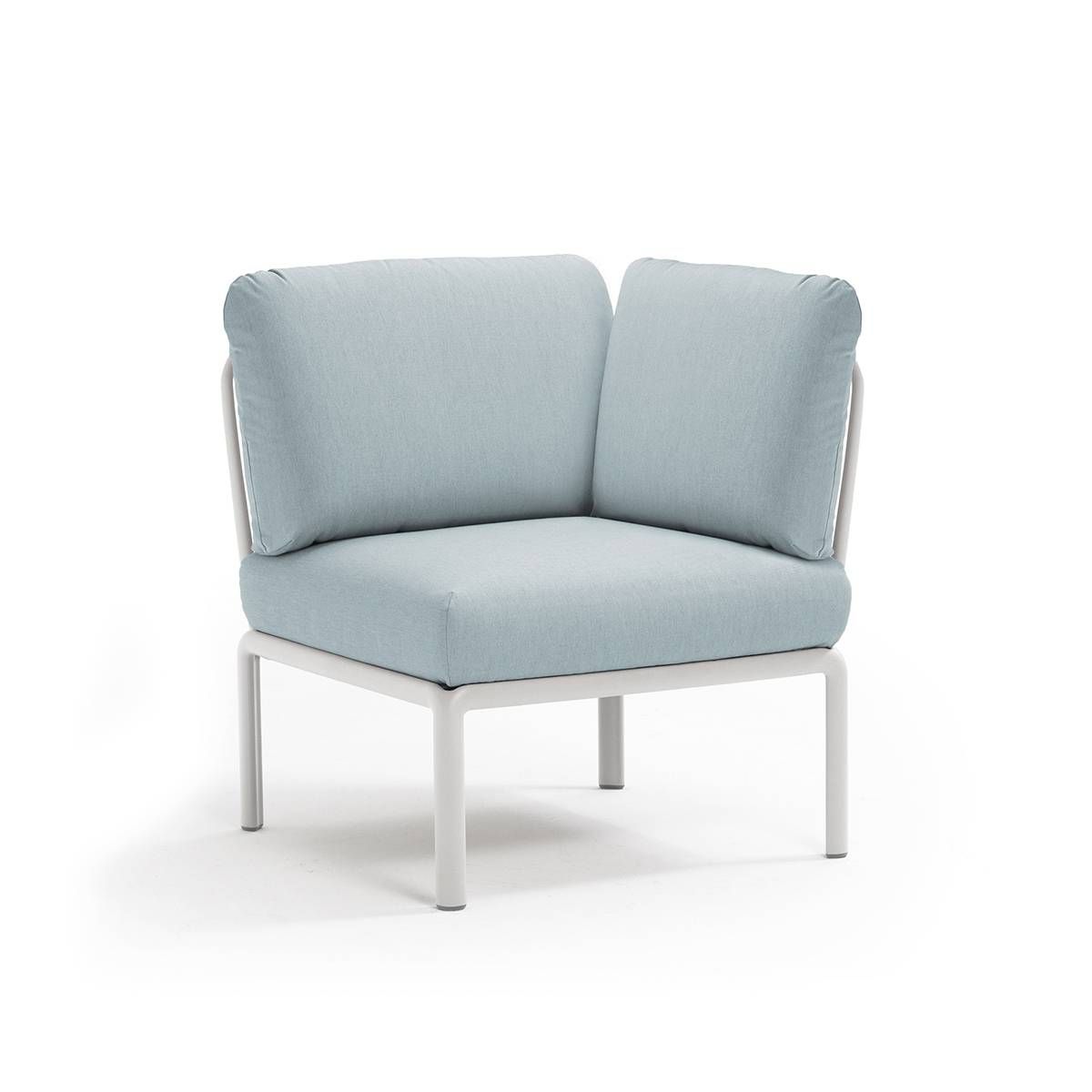 Kotni element KOMODO, za sestavo svoje poljubne garniture ter za poljubno kombinacijo elementov iz serije KOMODO. Barva ogrodja: bianco s poljubno barvo blazine. Služi lahko kot kotni element garniture.
