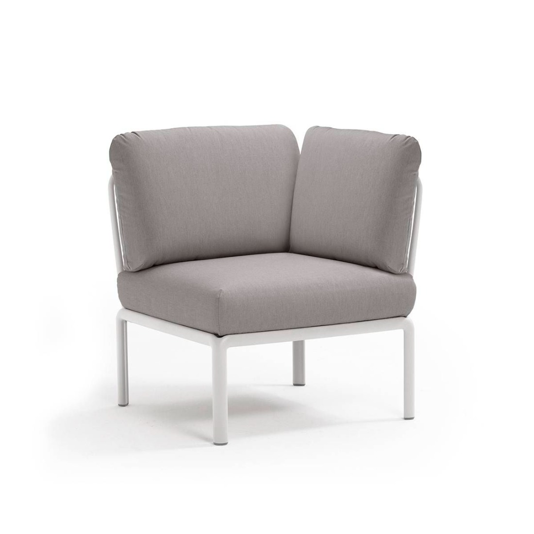 Kotni element KOMODO, za sestavo svoje poljubne garniture ter za poljubno kombinacijo elementov iz serije KOMODO. Barva ogrodja: bianco s poljubno barvo blazine. Služi lahko kot kotni element garniture.