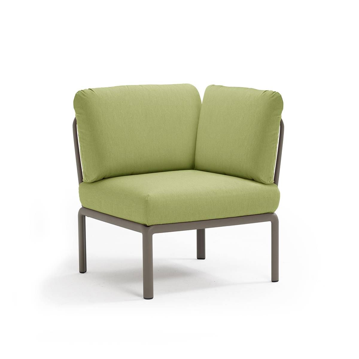 Kotni element KOMODO, za sestavo svoje poljubne garniture ter za poljubno kombinacijo elementov iz serije KOMODO. Barva ogrodja: tortora s poljubno barvo blazine. Služi lahko kot kotni element garniture.