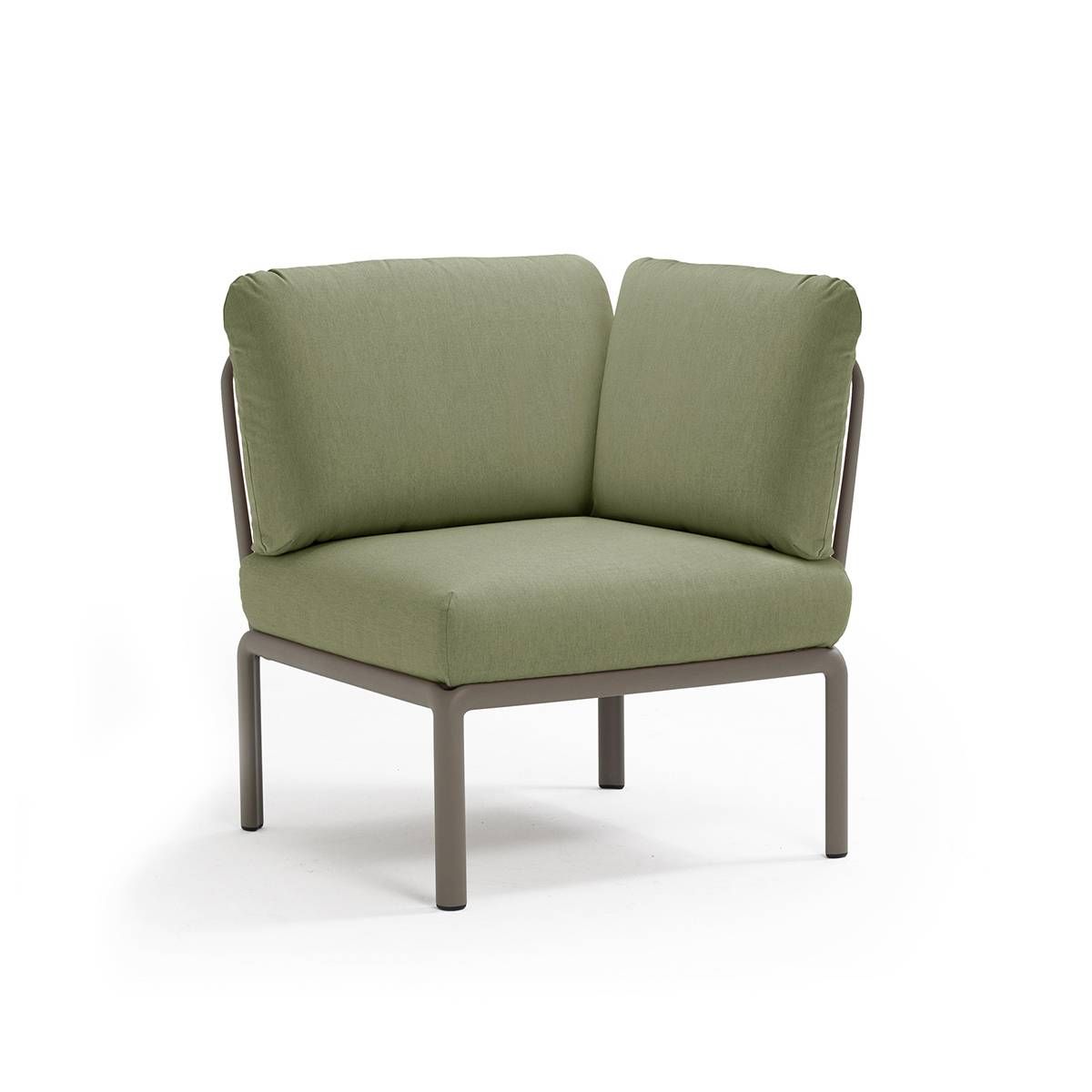 Kotni element KOMODO, za sestavo svoje poljubne garniture ter za poljubno kombinacijo elementov iz serije KOMODO. Barva ogrodja: tortora s poljubno barvo blazine. Služi lahko kot kotni element garniture.