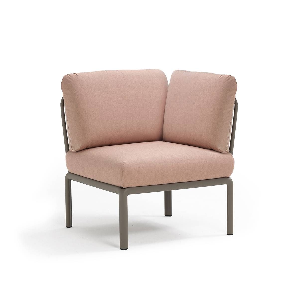 Kotni element KOMODO, za sestavo svoje poljubne garniture ter za poljubno kombinacijo elementov iz serije KOMODO. Barva ogrodja: tortora s poljubno barvo blazine. Služi lahko kot kotni element garniture.