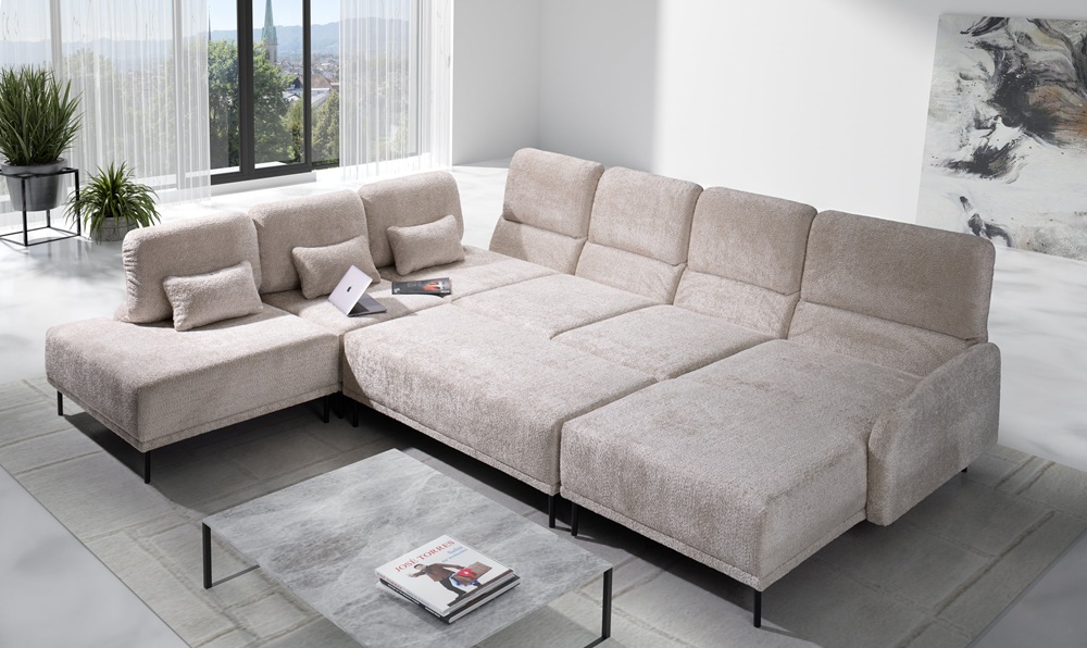 Modularni pohištveni sistem oblazinjenega pohištva z nastavljivimi hrbtnimi naslonjali. Kotnemu elementu lahko po želji priključite več različnih elementov, ki jih dodate poljubno po svoji želji.