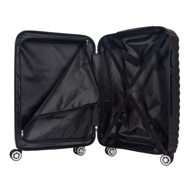 Izredno kvalitetni kovčki, narejeni iz ABS plastike. Z 8 vrtjivimi kolesi, kvalitetnim zapiranjem na zadrgo in aluminijskim ročajem.Ta komplet kovčkov je poleg tega zelo vzdržljiv in lahek, zato bo odličen spremljevalec na vsakem potovanju.