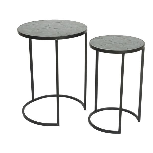 Vaasa stranski mizici.Mere večje mizice: višina 54 cm / premer 40 cmMere male mizice: višina 48.5cm / premer 30 cmDekoracija: marmorni mozaik.