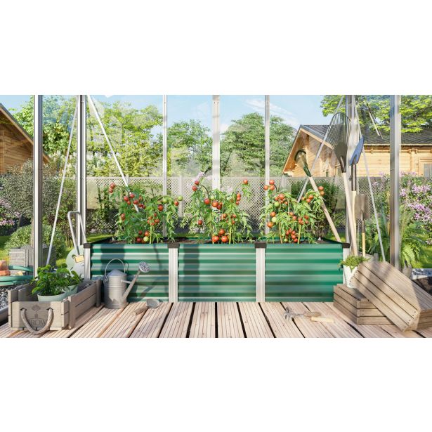 Komplet za gredo (visoko) za rastlinjak iz posebej trpežnih cinkalum plošč in profilov iz eloksiranega aluminija.