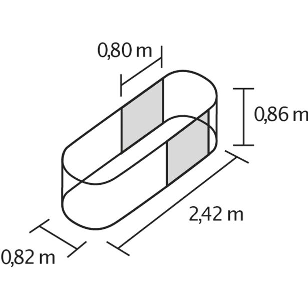 S tem modularnim elementom lahko podaljšate svojo visoko gredo Vitavia “Vita 858” za 80 cm dolžine. Skica ponazarja visoko gredo “Vita 858”, osenčeni del pa ta modularni element. Ker so visoke grede “Vita 858” dobavljive v treh različnih barvah (naravna, rubinasta in granitna), prosimo izberite pravo barvo tega modularnega elementa.