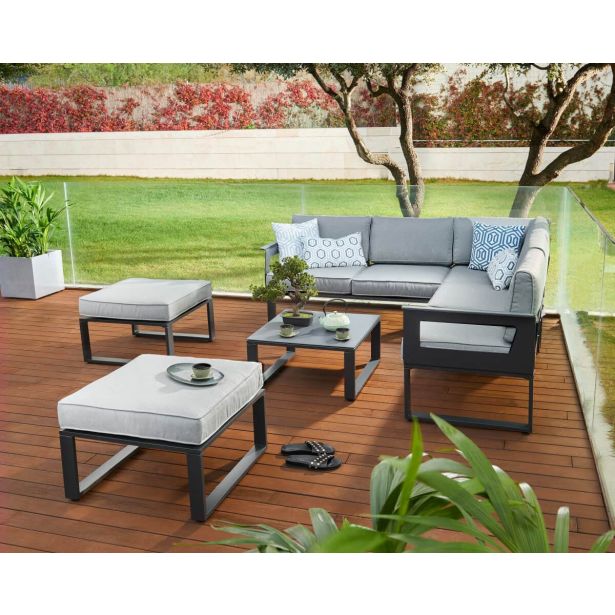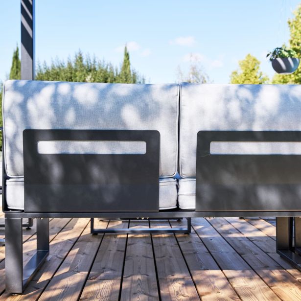 Z družino ali prijatelji se zberite in uživajte v prijetnih trenutkih s kotičkasto sedežno garnituro Odyssea! Tako na prostem kot pod pergolo njena zasnova in antracitna barva prinašata vašim zunanjim prostorom sodoben in prijeten videz.