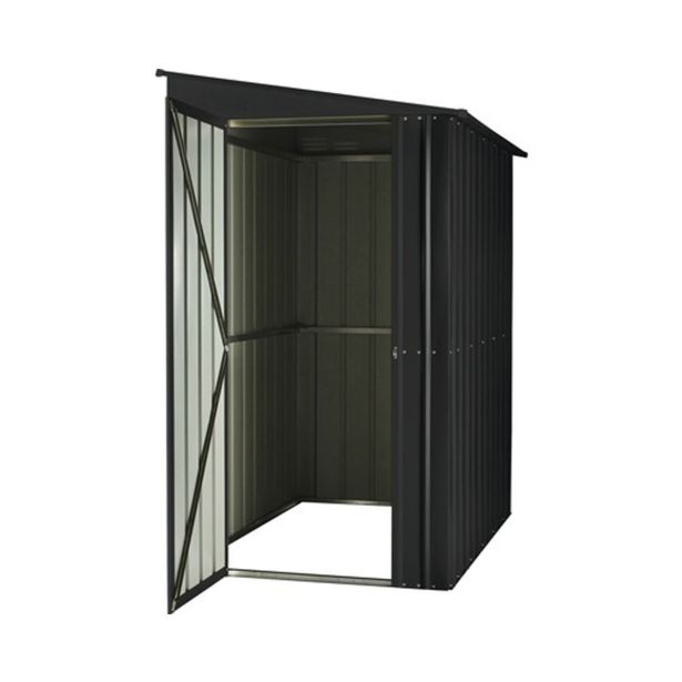 Premium stensko hiško Lean-To 56 s kompaktno površino z lahkoto namestite na manjše vrtove ali celo predvrtove. Strop je visok več kot 2,0 m, vrata so visoka 1,72 m, ravna streha pa zagotavlja prijetno višino v celotni notranjosti.