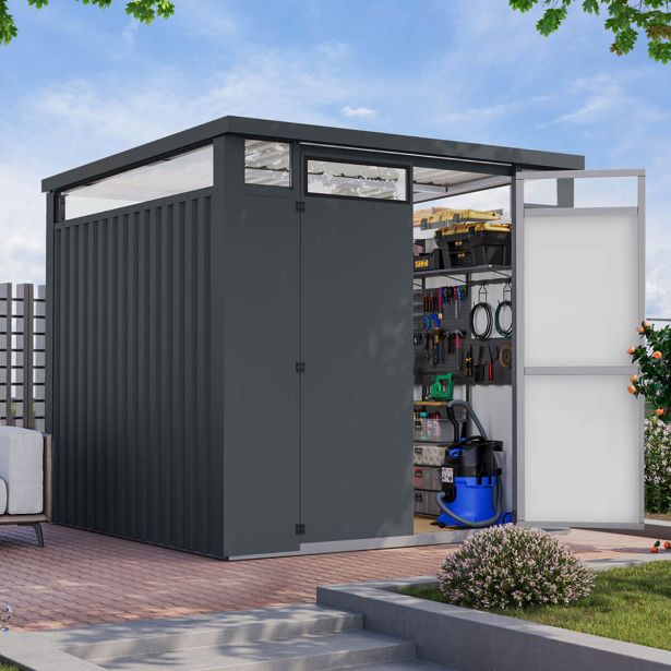 Iščete lopo za vse vaše vrtno orodje? Želite, da je robustna, modernega videza in ne potrebuje vzdrževanja? Potem ste prišli na pravo mesto. Kovinska lopa Osten je robustno izdelana, ponuja dragocen prostor za shranjevanje v moderni zasnovi in ne potrebuje vzdrževanja. V celoti je izdelana iz vremensko odporne kovine in ima strešno okno, ki ga obdaja, in visokokakovosten sistem za odvajanje deževnice . Kovina je antracitne barve, vijaki pa so enake barve jekla, da se popolnoma dopolnjujejo z zunanjostjo.