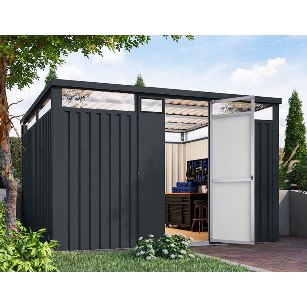 Kovinska vrtna hišica Karibu Osten 3.5 – modularna hišica – lopa za orodje – enokapnica – antracit