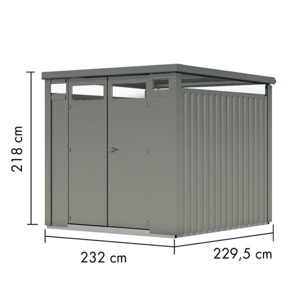 Kovinska vrtna hišica Karibu Osten 2 – modularna hišica – lopa za orodje – enokrilna streha – siva
