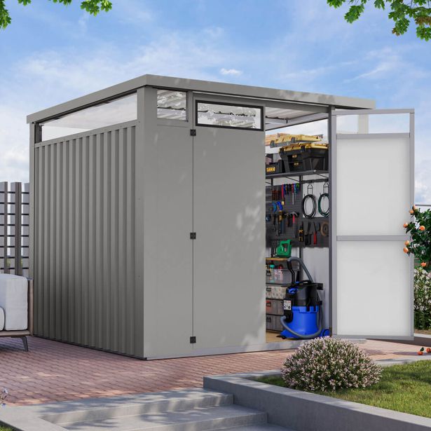 Iščete lopo za vse vaše vrtno orodje? Želite, da je robustna, modernega videza in ne potrebuje vzdrževanja? Potem ste prišli na pravo mesto. Kovinska lopa Osten je robustno izdelana, ponuja dragocen prostor za shranjevanje v moderni zasnovi in ne potrebuje vzdrževanja. V celoti je izdelana iz vremensko odporne kovine in ima strešno okno, ki ga obdaja, in visokokakovosten sistem za odvajanje deževnice . Kovina je sive barve, vijaki pa so enake barve jekla, da se popolnoma dopolnjujejo z zunanjostjo.