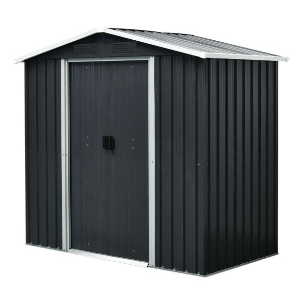 Hiška za orodje Düsseldorf s površino 2,66 m2 je na voljo v sivi barvi. Izdelek se dobavi razstavljen in brez dna.
