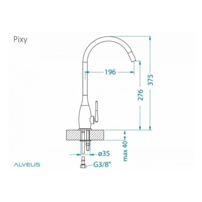 Kuhinjska armatura PI je iz kroma. Armatura je visokotlačna. Dimenzije  armature so 19,6 x 34,5 cm.