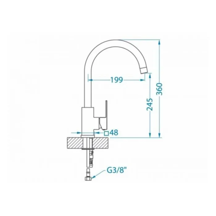 Kuhinjska armatura SAN je iz granitala. Dimenzije so 19,9 x 36,0 cm.