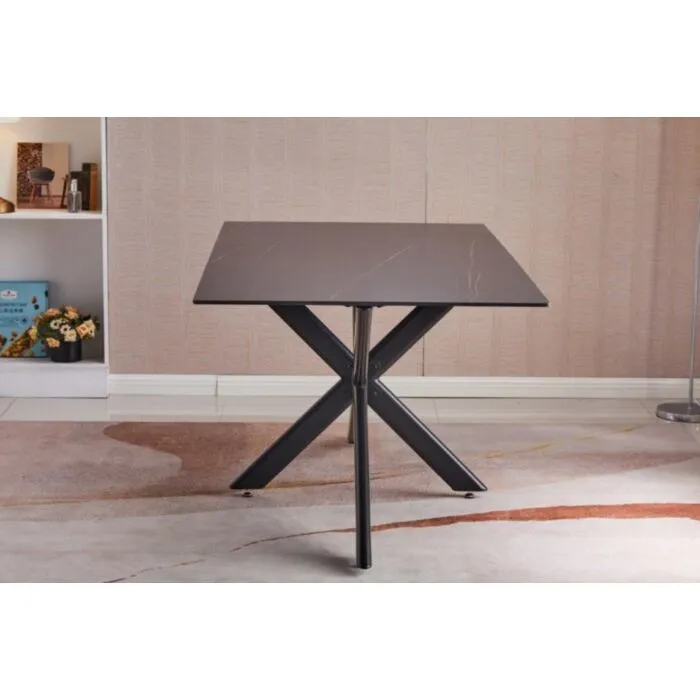 Kuhinjska jedilna miza ALEN je moderna miza v kombinaciji črnih kovinskih nog s marmor mizno ploščo, narejeno iz keramične plošče debeline 12 mm.