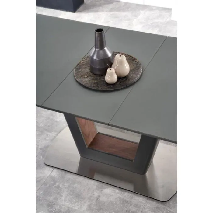 Kuhinjska jedilna miza BILET je sodobna in kvalitetna miza, ki se lahko raztegne. Narejena je iz kvalitetnih materialov, je stabilna in prijetna na pogled. Lepo se kombinira z raznoraznim tipom ostalega pohištva. Prijetna barva oreha se lepo kombinira z dvema odtenkoma sive, ki sta na voljo; antracit in svetlosiva. Za mizo lahko v podaljšani verziji sedi tudi osem oseb.