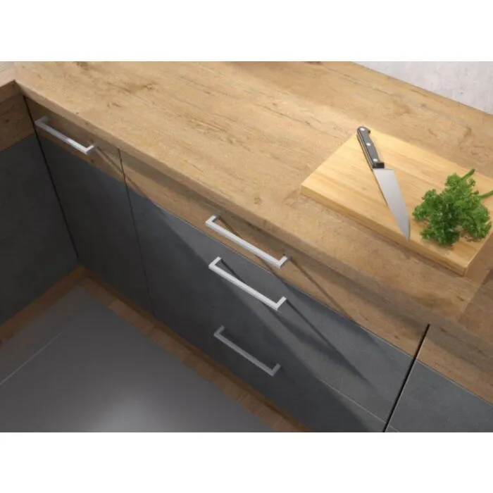 Kuhinjski pult HRAST je dobro odporen na zunanje dejavnike, kot so praske, tekočine, udarci in toplota. Debelina plošče je 28 mm. Dobavljiv je v barvi hrasta.